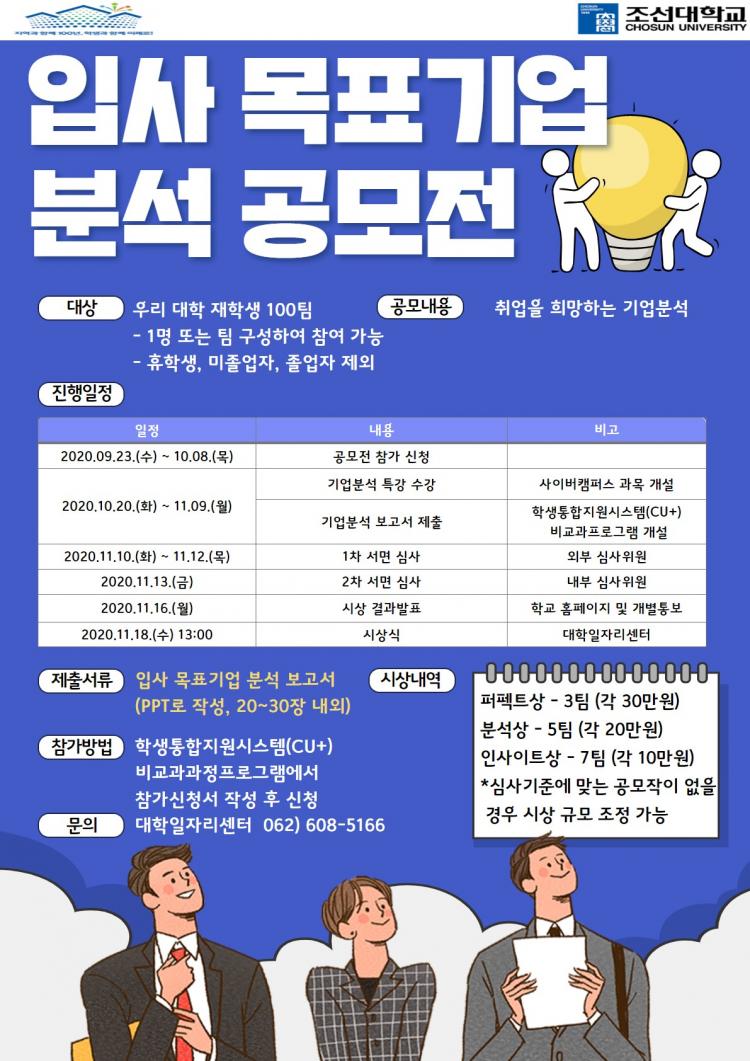 [ÅåÅå´º½º]Á¶¼±´ëÇб³ ´ëÇÐÀÏÀÚ¸®¼¾ÅÍ´Â ÀçÇлýÀ» ´ë»óÀ¸·Î Ãë¾÷À» Èñ¸ÁÇÏ´Â ±â¾÷À» Ž»öÇÏ´Â ´É·Â, ºÐ¼® ´É·Â, ¹®¼ÀÛ¼º ´É·ÂÀ» Çâ»ó½Ã۰íÀÚ ¡®ÀÔ»ç ¸ñÇ¥±â¾÷ ºÐ¼® °ø¸ðÀü¡¯À» ÁøÇàÇϰí ÀÖ´Ù.