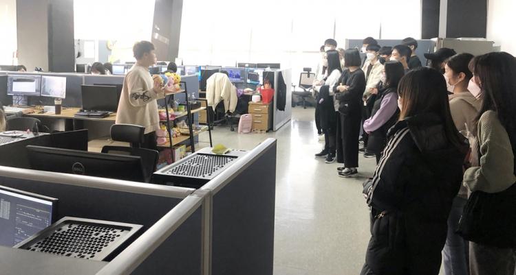 À̳¯ ÇлýµéÀº CGI¼¾ÅÍ ¾Ö´Ï¸ÞÀÌ¼Ç ÀÔÁÖ±â¾÷ ¢ßÆÛ´ÏÇ÷°½º¸¦ ¹æ¹®, ±è¼ö¿ë Â÷ÀåÀ¸·ÎºÎÅÍ ¾Ö´Ï¸ÞÀÌ¼Ç Á¦ÀÛ °úÁ¤°ú ´Ù¾çÇÑ ºÐ¾ß¿¡ ´ëÇÑ ¼³¸íÀ» µè°í ÇöÀå¿¡¼ ½Ç¹«¸¦ Á÷Á¢ üÇèÇß´Ù.