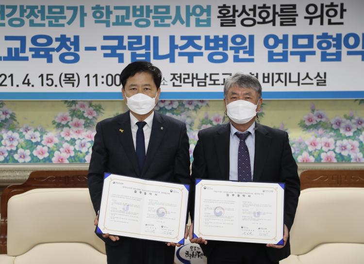 [ÅåÅå´º½º] Àü¶ó³²µµ±³À°Ã»°ú ±¹¸³³ªÁÖº´¿øÀÌ 4¿ù 15ÀÏ(¸ñ) Àü¶ó³²µµ±³À°Ã»¿¡¼ Àå¼®¿õ ±³À°°¨, À±º¸Çö º´¿øÀåÀ» ºñ·ÔÇÑ µÎ ±â°ü °ü°èÀÚµéÀÌ Âü¼®ÇÑ °¡¿îµ¥ Á¤½Å°Ç°Àü¹®°¡ Çб³¹æ¹®»ç¾÷ Ȱ¼ºÈ¸¦ À§ÇÑ ¾÷¹«Çù¾àÀ» ü°áÇß´Ù.