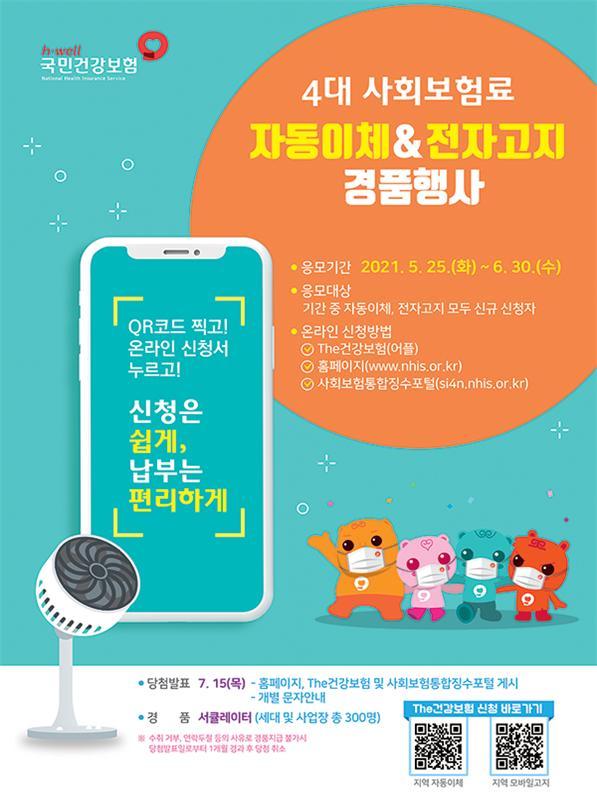 4´ë »çȸº¸Çè ÀÚµ¿ÀÌü¿Í ÀüÀÚ°íÁö ½Åû¹æ¹ýÀº Áö¿ª°¡ÀÔÀÚ´Â Æ÷½ºÅÍ¿¡ ³ª¿Í ÀÖ´Â QRÄڵ带 ÅëÇØ °ø´ÜÀÇ ¸ð¹ÙÀϾÛÀÎ The°Ç°º¸Çè ½Åû¼·Î ¿¬°áµÇ¸ç °øµ¿ÀÎÁõ¼³ª ±ÝÀ¶ÀÎÁõ¼·Î ·Î±×ÀÎ ÈÄ ¹Ù·Î ½Åû°¡´ÉÇϸç, »ç¾÷ÀåÀº »çȸº¸ÇèÅëÇÕ¡¼öÆ÷ÅÐ(si4n.nhis.or.kr)À̳ª EDI¿¡¼ ¿Â¶óÀÎ ½ÅûÀÌ °¡´ÉÇÏ´Ù.