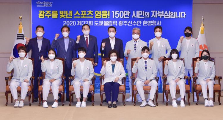 ±¤ÁÖ±¤¿ª½Ã´Â 11ÀÏ ¿ÀÈÄ ½Ãû ºñÁî´Ï½º·ë¿¡¼ Çϰè¿Ã¸²ÇÈ ÃÖÃÊ ¾ç±Ã ±Ý¸Þ´Þ 3°ü¿Õ ¾È»ê(±¤ÁÖ¿©´ë), Ææ½Ì ¿©¼º´Üü Àº¸Þ´Þ °¿µ¹Ì(¼±¸Ã»), ±Ù´ë5Á¾¿¡¼ ´ëÇѹα¹ ÃÖÃÊ µ¿¸Þ´ÞÀ» µý Àü¿õÅÂ(±¤ÁÖ½Ãû) ¼±¼ö µî ¼±¼ö´Ü 9¸íÀÌ Âü¼®ÇÑ °¡¿îµ¥ ȯ¿µÇà»ç¸¦ ¿¾ú´Ù.