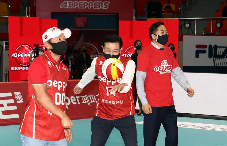 [ÅåÅå´º½º] À̿뼷 ±¤ÁÖ±¤¿ª½ÃÀåÀÌ 19ÀÏ ¿ÀÈÄ ¼±¸ ¿°ÁÖÁ¾ÇÕüÀ°°ü(ÆäÆÛ½ºÅ¸µð¿ò)¿¡¼ ¿¸° 2021-22 µµµå¶÷ V¸®±× ¿©ÀںΠ1¶ó¿îµå AIÆäÆÛ½º¿Í KGCÀÎ»ï°ø»çÀÇ È¨ °³¸·Àü¿¡ Âü¼®ÇØ Àå¸ÅÆ© ±¸´ÜÁÖ, ±è¿ëÁý ±¤ÁÖ½ÃÀÇȸ ÀÇÀå µî ³»ºóµé°ú ½ÄÀüÇà»ç¸¦ °ü¶÷ÇÏ¸ç ¹Ú¼ö¸¦ Ä¡°í ÀÖ´Ù./±¤ÁÖ±¤¿ª½Ã Á¦°ø