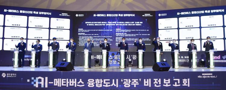 ½Ã´Â 16ÀÏ ±è´ëÁßÄÁº¥¼Ç¼¾ÅÍ¿¡¼ ¡®AI-¸ÞŸ¹ö½º À¶ÇÕµµ½Ã ±¤ÁÖ¡¯ ºñÀüÀ» Á¦½ÃÇϰí, 24°³ ±â°ü¡¤±â¾÷µé°ú ¸ÞŸ¹ö½º À¶ÇսŻê¾÷ »ýŰè Á¶¼º¿¡ »óÈ£ Çù·ÂÇÏ´Â ³»¿ëÀÇ ¾÷¹«Çù¾àÀ» ü°áÇß´Ù.