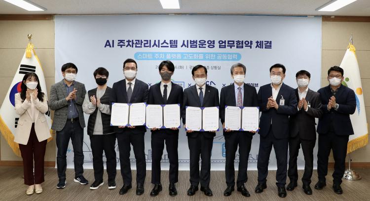 ±¤»ê±¸°¡ 16ÀÏ ±¤»ê±¸½Ã¼³°ü¸®°ø´Ü(º»ºÎÀå ½Å¼±È£), ÀΰøÁö´É»ê¾÷À¶ÇÕ»ç¾÷´Ü(´ÜÀå ÀÓÂ÷½Ä), ¢ßÆÄÅ©¿þÀ̺ê(´ëÇ¥ ±èÅÂÀ±)¿Í ¡®AI ÁÖÂ÷°ü¸®½Ã½ºÅÛ ½Ã¹ü¿î¿µ ¾÷¹«Çù¾à¡¯À» ü°áÇß´Ù.