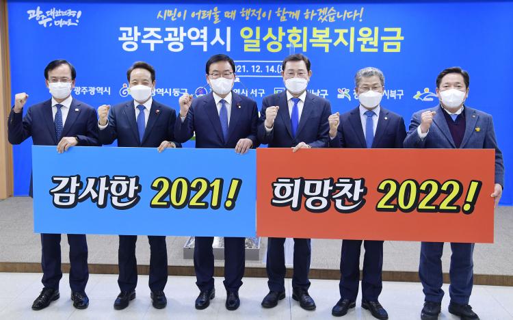 À̿뼷 ±¤ÁÖ±¤¿ª½ÃÀå°ú ÀÚÄ¡±¸Ã»ÀåµéÀº ¡°Áö³ 2³â¿© µ¿¾È »çȸÀû °Å¸®µÎ±â Àå±âÈ¿¡ µû¸¥ ºÒÆíÀ» °¨³»Çϸ鼵µ Àû±ØÀûÀ¸·Î ¹æ¿ª¿¡ ÇùÁ¶ÇØ ÁֽЏðµç ½Ã¹ÎºÐµé²² °¨»çµå¸®¸ç, À̹ø ÀÏ»óȸº¹Áö¿ø±ÝÀº ½Ã¹Îµé²²¼ ÃÖ´ëÇÑ Æí¸®ÇÑ ¹æ½ÄÀ¸·Î ½ÅûÇϰí Áö±Þ¹Þ¾Æ »ç¿ëÇÒ ¼ö ÀÖµµ·Ï Çϰڴ١±°í ¹àÇû´Ù.