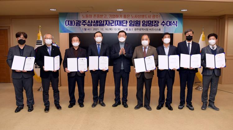À̿뼷 ½ÃÀåÀº ¡°±¤ÁÖ»ó»ýÀÏÀÚ¸®Àç´ÜÀº ±¤ÁÖ½ÃÀÇ ³ë»ç»ó»ýµµ½Ã ¼±¾ð°ú ³ë»ç¹ÎÁ¤ÇùÀÇȸ ¿î¿µ µî ³ëµ¿Á¤Ã¥ Àü¹ÝÀÇ ½ÇÈ¿¼ºÀ» È®º¸Çϴµ¥ ÇÙ½ÉÀûÀÎ ¿ªÇÒÀ» Çϰí, ³ëµ¿ °ü·Ã ´Üü¿Í ½Ã¼³ µîÀÌ È¿À²ÀûÀ¸·Î ¿î¿µµÇµµ·Ï Áö¿øÇÏ´Â ³ëµ¿¼ºñ½º Ç÷§Æû ±â´Éµµ ¼öÇàÇÒ °ÍÀÌ´Ù¡±¸ç ¡°´Ù¸¥ µµ½Ã¿¡¼ ³ë»ç»ó»ýÀ» À̾߱âÇÒ ¶§ ±¤ÁÖ¿Í ±¤ÁÖÇüÀÏÀÚ¸® ¸ðµ¨ÀÌ ±³°ú¼Ã³·³ ȸÀÚµÉ ¼ö ÀÖµµ·Ï, ¿ª»çÀû ¼Ò¸íÀǽÄÀ» °®°í ±æÀ» ¿¾îÁÖ±æ ¹Ù¶õ´Ù¡±°í ¸»Çß´Ù.