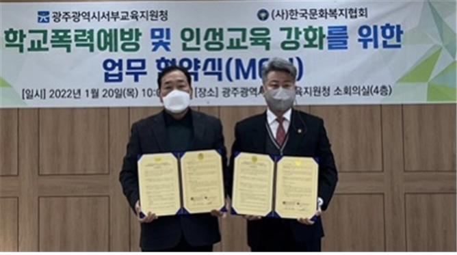 [ÅåÅå´º½º] ±¤ÁÖ¼ºÎ±³À°Áö¿øÃ»ÀÌ 20ÀÏ Áö¿øÃ» ³» ¼ÒȸÀǽǿ¡¼ Çѱ¹¹®Èº¹ÁöÇùȸ¿Í ¾÷¹«Çù¾àÀ» ü°áÇß´Ù.