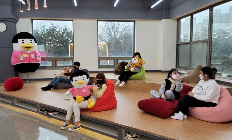 [ÅåÅå´º½º] È£³²´ëÇб³(ÃÑÀå ¹Ú»óö)°¡ ÀçÇлýµéÀÇ È޽İú ¼ÒÅë, ¸éÇÐ °ø°£À¸·Î Ȱ¿ëµÇ°í ÀÖ´Â Ä«ÆäÇü½°ÅÍ È£½ºÄ«(È£³²´ë ½ºÅ͵ð Ä«Æä)¿¡ ¡®È£È£ÆÐ¹Ð¸® Æ÷ÅäÁ¸¡¯À» ¼³Ä¡ÇØ Çлýµé·ÎºÎÅÍ Å« Àα⸦ ²ø°í ÀÖ´Ù.