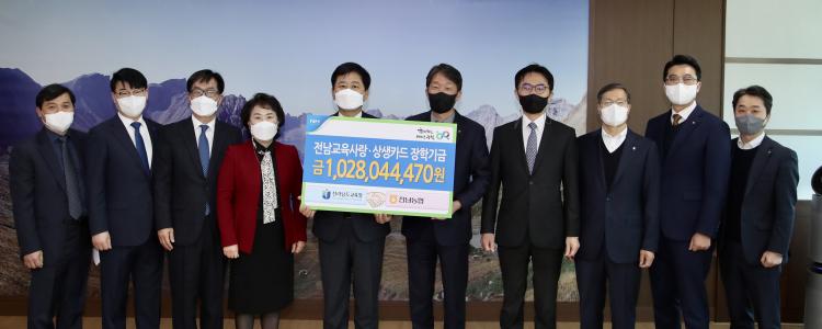 [ÅåÅå´º½º]NH³óÇùÀºÇà Àü³²¿µ¾÷º»ºÎ(º»ºÎÀå ÀÌâ±â)°¡ 8ÀÏ Àü¶ó³²µµ±³À°Ã»¿¡¼ ¡®Àü³²±³À°»ç¶ûÄ«µå ÀåÇбâ±Ý¡¯ 10¾ï 2,804¸¸ 4,470¿øÀ» Àå¼®¿õ Àü³²µµ±³À°°¨¿¡°Ô Àü´ÞÇß´Ù.
