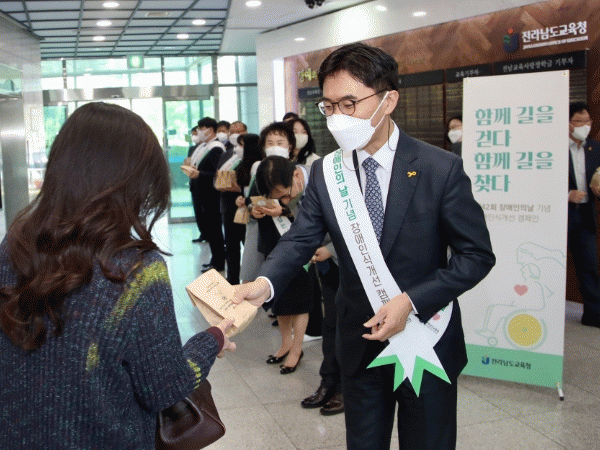 [ÅåÅå´º½º]Àü¶ó³²µµ±³À°Ã»ÀÌ 20ÀÏ Á¦42ȸ Àå¾ÖÀÎÀÇ ³¯À» ¸Â¾Æ û»ç 1Ãþ¿¡¼ Àüü Á÷¿øÀ» ´ë»óÀ¸·Î ¡®ÇÔ²² ±æÀ» ã´Ù. ÇÔ²² ±æÀ» °È´Ù¡¯¶ó´Â ÁÖÁ¦·Î Àå¾ÖÀνݳ¼± Ä·ÆäÀÎÀ» ½Ç½ÃÇß´Ù.