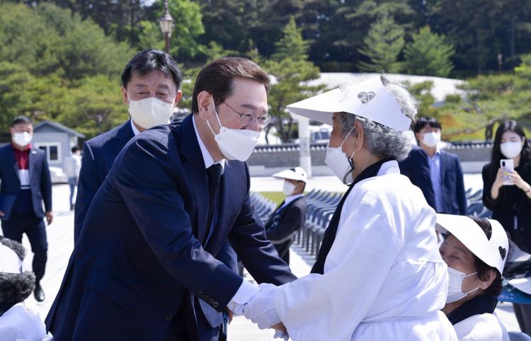 [ÅåÅå´º½º]À̿뼷 ±¤ÁÖ±¤¿ª½ÃÀåÀÌ 17ÀÏ ¿ÀÀü ºÏ±¸ ¿îÁ¤µ¿ ±¹¸³5¡¤18¹ÎÁÖ¹¦Áö¿¡¼ ¿¸° 'Á¦42ÁÖ³â 5¡¤18¹ÎÁÖȿ Ã߸ðÁ¦'¿¡ Âü¼®ÇØ Ã߸ð»ç¿Í ÇÔ²² À¯°¡Á·À» À§·ÎÇϰí ÀÖ´Ù./±¤ÁÖ±¤¿ª½Ã Á¦°ø
