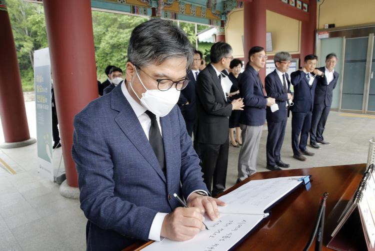 Çåȸ¦ ¸¶Ä£ µÚ ¾È¿µ±Ù º´¿øÀåÀº ¡°¿À¿ù ¿µ·ÉµéÀÇ ¼þ°íÇÑ Èñ»ýÀ» ±â¾ïÇÏ°í ¹ÎÁÖ, ÀαÇ, ÆòÈÀÇ ¼þ°íÇÑ °¡Ä¡¸¦ °è½Â¡¤¹ßÀü½Ã۵µ·Ï Çϰڴ١±¸ç ¡°ÇϷ绡¸® °¨ÃçÁø Áø½ÇÀ» ¹àÇô³» Èñ»ýÀÚ¿Í À¯Á·µéÀÇ ¸í¿¹¸¦ ȸº¹Çϰí, ÁøÁ¤À¸·Î ±¤ÁÖÀÇ ¾ÆÇÄÀ» Ä¡À¯ÇÏ´Â ³¯ÀÌ ¿À±æ ¹Ù¶õ´Ù¡±°í ¹àÇû´Ù.