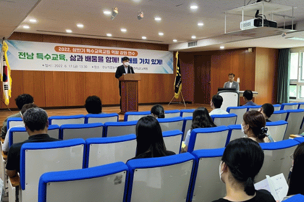 Àü¶ó³²µµ±³À°Ã» °ü°èÀÚ´Â ¡°Æ¯¼ö±³À°´ë»óÇлý »îÀÇ Áú Çâ»óÀ» À§ÇØ Æ¯¼ö±³À°±³¿øÀÇ Àü¹®¼º°ú ¼ö¾÷ Çõ½Å ¿ª·®À» °ÈÇϰí, Áö¿ª»çȸ¿Í ÇÔ²² ¸¸µé¾î°¡´Â Ư¼ö±³À°ÀÌ µÇµµ·Ï Áö¿ø¿¡ ÃÖ¼±À» ´Ù ÇϰڴÙ.¡±°í ¸»Çß´Ù.