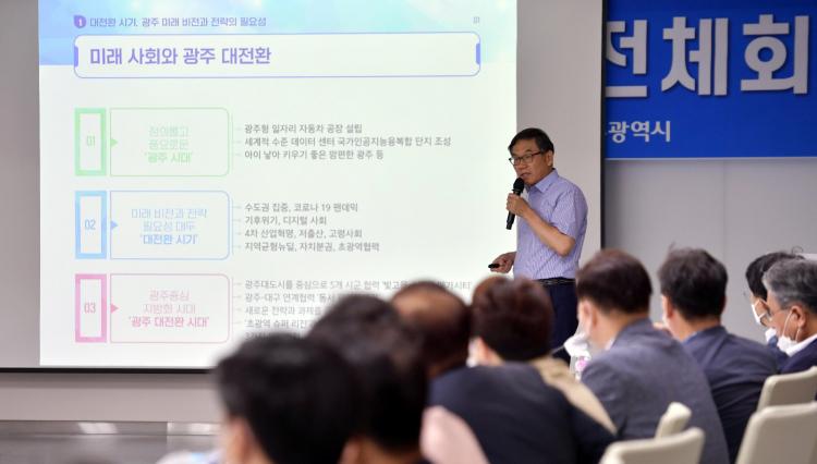 ±¤ÁÖ ´ëÀüȯ Ưº°À§¿øÈ¸´Â ±×µ¿¾È ±¤ÁÖ ´ëÀüȯÀ» À§ÇØ ÇÊ¿äÇÑ °úÁ¦µéÀ» À§¿øµé·ÎºÎÅÍ Á¦¾È¹Þ¾Æ ³íÀÇÇØ¿ÔÀ¸¸ç, ¡®Ä£È¯°æ ¿î¼Û¼ö´ÜÀ» ÅëÇÑ ¹«µî»ê Á¤»óÁ¢±Ù·Î °³¼±¡¯, ¡®±¤ÁÖÇü ½Ç¸®ÄÜ ¹ë¸® Á¶¼º¡¯, ¡®±¤ÁÖÇü °¡»óÀ¶ÇÕ µµ½Ã°øµ¿Ã¼ Ç÷§Æû ±¸Ã࡯, ¡®À̺ñ¿¡½º(EBS) ij¸¯ÅÍ·£µå Á¶¼º¡¯, ¡®´ëÇü º¹ÇÕ¼îÇθô À¯Ä¡¡¯ µî ÃÑ 20°ÇÀÇ °úÁ¦¸¦ ÃÖÁ¾ Á¦¾ÈŰ·Î Çß´Ù°í º¸°íÇß´Ù.