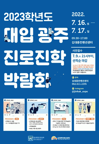 ¡ã¼öµµ±Ç ´ëÇÐ, ±¤ÁÖÀü³²Áö¿ª´ëÇÐ, Àü¹®´ëÇÐ °øµ¿ ´ëÀÔ¼³¸íȸ¿Í °¢ ´ëÇк° ¼³¸íȸ, À½¾Ç?¹Ì¼ú?üÀ°°è¿ ¼³¸íȸµµ µ¿½Ã¿¡ °³ÃÖÇÑ´Ù. Áø·Î?ÁøÇлó´ã ¿Â¶óÀÎ ¹êµå¿Í ¿¬°èÇØ ½Ç½Ã°£À¸·Î ´ëÀÔ °ü·Ã ¹¯°í ´äÇϱâ Çà»çµµ À̾îÁø´Ù.