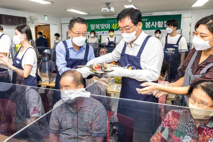 ¹«´õÀ§°¡ ¿¬ÀÏ À̾îÁö´Â °¡¿îµ¥ ±¤ÁÖÀºÇàÀº ¸»º¹À» ¾ÕµÎ°í ³ëÀκ¹Áö½Ã¼³À» ã¾Æ ¾î¸£½Åµé¿¡°Ô ¿µ¾çÀüº¹»ï°èÅÁ 250ÀκÐÀ» ´ëÁ¢Çß´Ù.