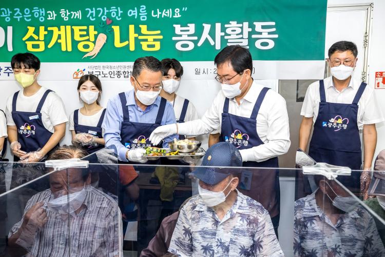 ÇÑÆí, ±¤ÁÖÀºÇàÀº ¸Å³â ¿©¸§¸¶´Ù ±¤ÁÖ, ¸ñÆ÷, ¼øÃµ µî °¢ Áö¿ªÀÇ ³ëÀκ¹Áö½Ã¼³À» ã¾Æ Áö¿ª ¾î¸£½Å¿¡°Ô º¸¾ç½ÄÀ» ´ëÁ¢ÇÏ´Â ¹è½Ä ºÀ»çȰµ¿À» ÁøÇàÇØ¿Ô´Ù. Äڷγª19 ¹æ¿ªÁöħÀ¸·Î ÀÎÇÑ ÀοøÁ¦ÇÑ µîÀÇ »çȸÀû °Å¸®µÎ±â¸¦ ÁؼöÇØ¾ß Çß´ø ½Ã±â¸¦ Áö³ª ´Ù½Ã ¹è½Ä ºÀ»çȰµ¿À» Àç°³ÇÏ¸é¼ Áö¿ªÀÇ ´õ ¸¹Àº ¾î¸£½Å¿¡°Ô µµ¿òÀ» ÀüÇÒ ¼ö ÀÖ´Â »çȸ°øÇåȰµ¿À» °èȹÇϰí ÀÖ´Ù.
