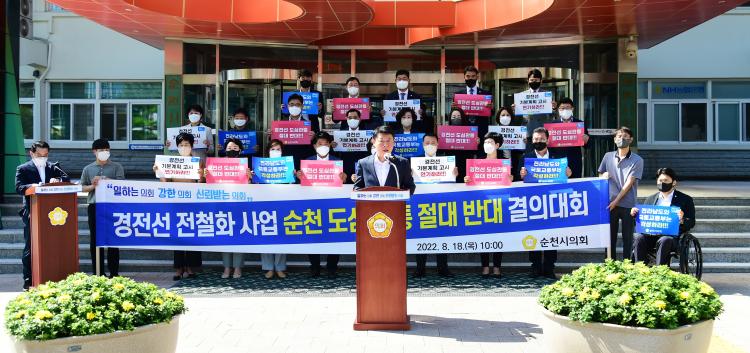 [ÅåÅå´º½º] ¼øÃµ½ÃÀÇȸ(ÀÇÀå Á¤º´È¸)´Â 18ÀÏ ¼øÃµ½Ãû Á¤¹® ¾Õ¿¡¼ °æÀü¼± ÀüÃ¶È »ç¾÷ ¼øÃµ µµ½É °üÅë Àý´ë ¹Ý´ë °áÀÇ´ëȸ¸¦ ¿¾ú´Ù.