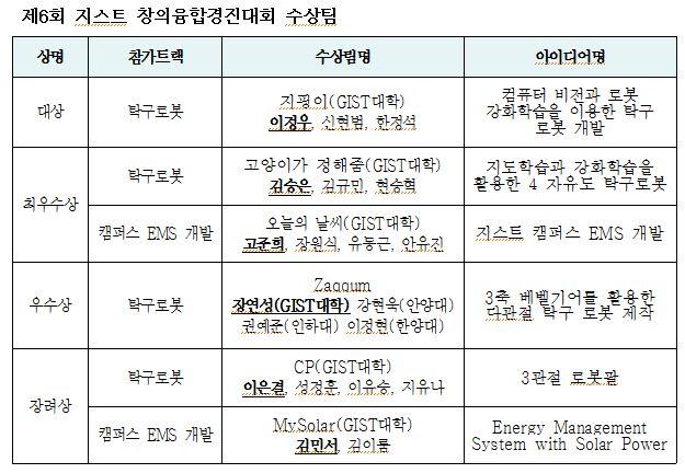¿ÃÇØ ´ëȸ ¿ì½ÂÀº ¡®Å¹±¸ ·Îº¿ ÄÜÅ×½ºÆ®¡¯ºÎ¹®¿¡¼ <ÄÄÇ»ÅÍ ºñÀü°ú ·Îº¿ °ÈÇнÀÀ» ÀÌ¿ëÇÑ Å¹±¸ ·Îº¿ °³¹ß>À» ÁøÇàÇÑ Áö½ºÆ® Çлç°úÁ¤ ±â°è°øÇÐ Àü°ø Çлý(ÀÌÁ¤¿ì¡¤½ÅÇö¹ü¡¤ÇÑÁ¤¼®)µé·Î ±¸¼ºµÈ ¡®ÁöÇÎÀÌ¡¯ÆÀÀÌ Â÷ÁöÇÏ¸ç »óÀå°ú 250¸¸¿ø »ó´çÀÇ ¹®È»óǰ±ÇÀ» ¼ö»óÇß´Ù.