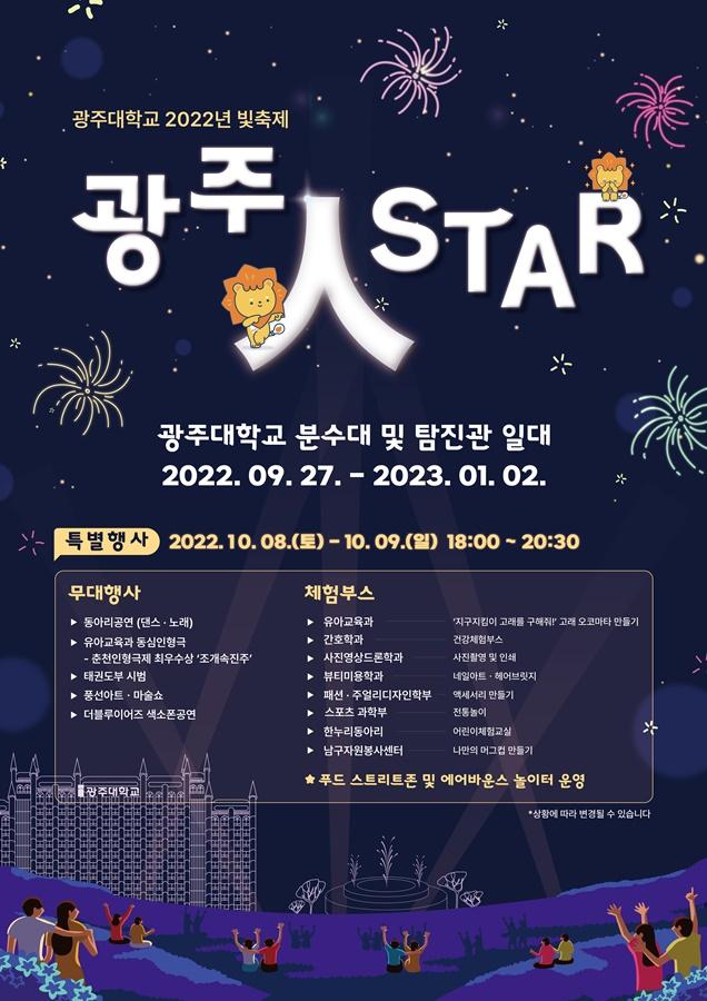 ±¤ÁÖ´ë´Â 2023³â 1¿ù 2ÀϱîÁö Çб³ ºÐ¼ö´ë ¹× ŽÁø°ü ÀÏ´ë¿¡¼ Áö¿ª¹Î°ú ÇÔ²²ÇÏ´Â ¡®2022³â ºû ÃàÁ¦ ±¤ÁÖìÑSTAR¡¯¸¦ °³ÃÖÇÑ´Ù°í ¹àÇû´Ù.