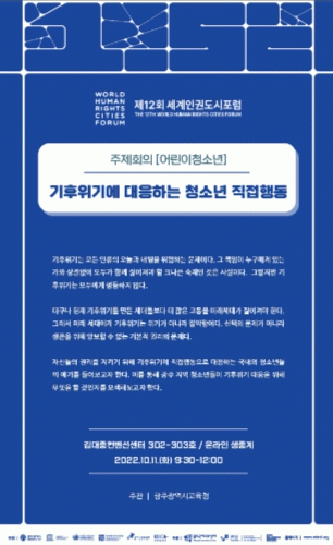 6ÀÏ ½Ã±³À°Ã»¿¡ µû¸£¸é Á¦12ȸ ¼¼°èÀαǵµ½ÃÆ÷·³Àº ¿À´Â 10~13ÀÏ ±¤Áֽñ³À°Ã», ±¤ÁÖ½Ã, ±¹°¡ÀαÇÀ§¿øÈ¸, À¯¿£ ÀαÇÃÖ°í´ëÇ¥»ç¹«¼Ò, À¯³×½ºÄÚ µîÀÌ °øµ¿ ÁÖÃÖÇÑ´Ù. ÀÌ Æ÷·³¿¡¼ ½Ã±³À°Ã»Àº ¡®±âÈÄÀ§±â¿¡ ´ëÀÀÇϴ û¼Ò³â Á÷Á¢Çൿ¡¯À̶ó´Â ÁÖÁ¦·Î ¡®¾î¸°ÀÌû¼Ò³â¡¯ ÁÖÁ¦È¸ÀǸ¦ ÁÖ°üÇÑ´Ù.