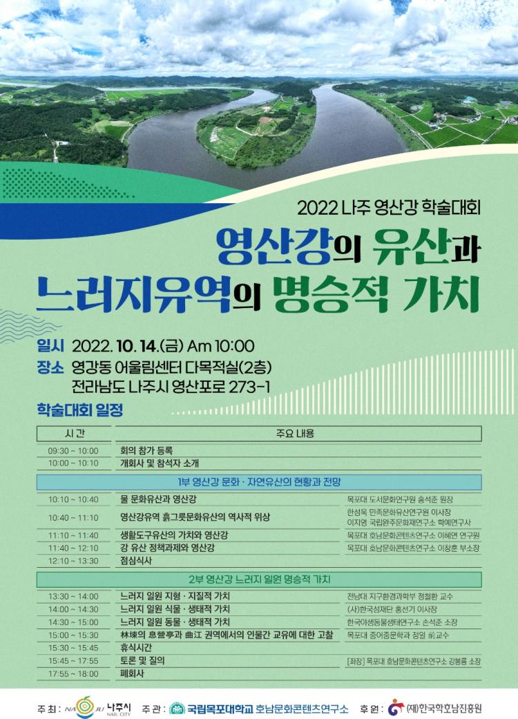 [ÅåÅå´º½º] ±¹¸³¸ñÆ÷´ëÇб³(ÃÑÀå ¹Ú¹Î¼) È£³²¹®ÈÄÜÅÙÃ÷¿¬±¸¼Ò(¼ÒÀå °ºÀ·æ)´Â ³ªÁÖ½Ã(½ÃÀå À±º´ÅÂ)¿Í ÇÔ²² ³ªÁÖ ¿µ°µ¿ ¾î¿ï¸²¼¾ÅÍ ´Ù¸ñÀû½Ç¿¡¼ ¿À´Â 10¿ù 14ÀÏ(±Ý) 9½Ã 30ºÐºÎÅÍ 18½Ã±îÁö ¡®¿µ»ê°ÀÇ À¯»ê°ú ´À·¯ÁöÀ¯¿ªÀÇ ¸í½ÂÀû °¡Ä¡¡¯¶ó´Â ÁÖÁ¦·Î 2022. ³ªÁÖ ¿µ»ê° Çмú´ëȸ¸¦ °³ÃÖÇÑ´Ù°í ¹àÇû´Ù.