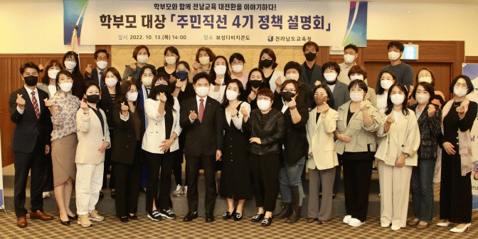 [ÅåÅå´º½º]Àü¶ó³²µµ±³À°Ã»ÀÌ 13ÀÏ º¸¼º´ÙºñÄ¡Äܵµ¿¡¼ Çкθð¿Í ÇÔ²² ¡®Àü³²±³À°´ëÀüȯÀ» À̾߱âÇÏ´Ù!¡¯´Â ÁÖÁ¦·Î Çкθð ´ë»ó ¡®ÁÖ¹ÎÁ÷¼± 4±â Á¤Ã¥¼³¸íȸ¡¯¸¦ °³ÃÖÇß´Ù.