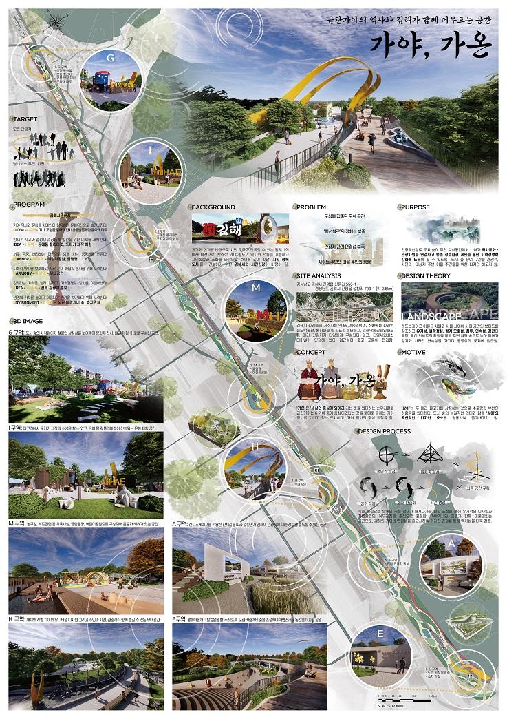 ´ë»óÀ» ¼ö»óÇÑ ±èÅÂÁß¡¤Àå¼Ò¿µ ÇлýÀÇ ¡®°¡¾ß, °¡¿Â¡¯Àº ½Ã¹Î Çູ µµ½Ã ±èÇØÀÇ ½Ã¹ÎÇåÀåÀ» ¹ÙÅÁÀ¸·Î °¡¾ß¿ª»ç¿Í ±èÇØ°¡ ÇÔ²² ¸Ó¹°·¯ ÀÖ´Â µµ½Ã ½£ °ø°£À» Á¦¾ÈÇß´Ù. ÀÌ´Â Áö¿ª¿¡ ´ëÇÑ ³ôÀº ÀÌÇØ ¹ÙÅÁÀ¸·Î ½ÇÇö °¡´ÉÇÑ Á¤ºñ¹æ¾ÈÀ» ¿ì¼öÇÑ µðÀÚÀÎÀ¸·Î Á¦½ÃÇß´Ù´Â Á¡°ú °ü±¤ ±â´É°ú ¿¬°èÇϰí Áö¿ª°øµ¿Ã¼¡¤È¯°æº¸ÀüÀ» À§ÇÑ °ø°£À» ¼³°èÇØ Áö¿ª°æÁ¦ Ȱ¼ºÈ¿Í ½½·Î½ÃƼ ±èÇØÀÇ °¡Ä¡ »ó½ÂÀ» ±â´ëÇØ º¼ ¼ö ÀÖ´Ù´Â Á¡¿¡¼ ½É»çÀ§¿øµé·ÎºÎÅÍ ³ôÀº Æò°¡¸¦ ¹Þ¾Ò´Ù.
