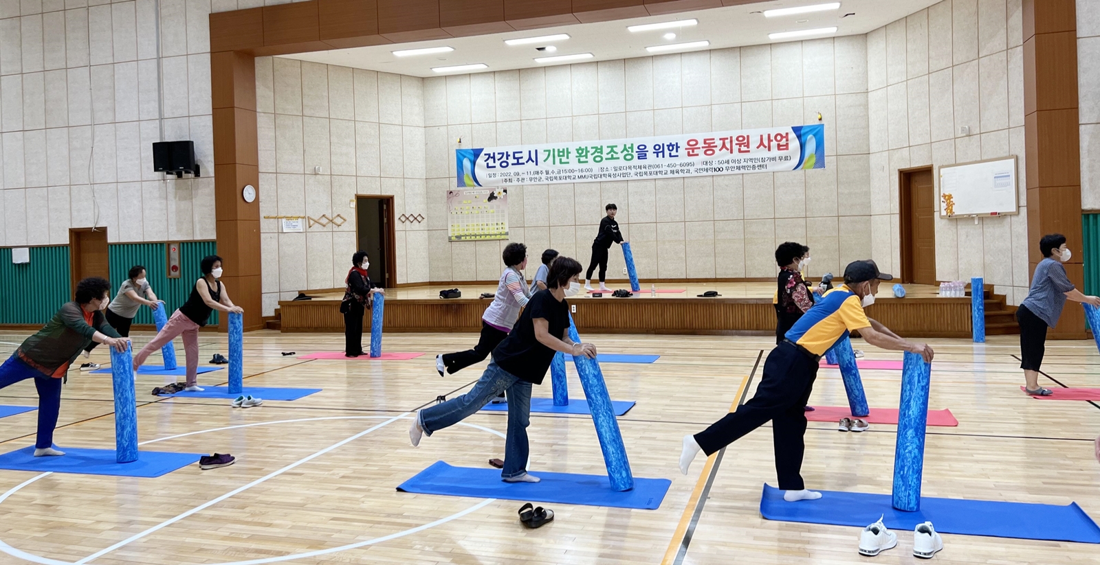 ¹«¾È±ºÀÌ Áö¿øÇÏ´Â °ø°øÃ¼À°°ü¿¡¼ ³ëÀο Àü¹®±³À°À» ¹ÞÀº üÀ°Çаú ÇлýµéÀÌ ³ëÀοÇÁ·Î±×·¥(±Ù·Â¿îµ¿, ³ëÀÎüÁ¶, Ä¡¸Å¿¹¹æ¿îµ¿, ³ë¸£µñ ¿öÅ· µî)À» ÁöµµÇϰí, ±¹¹Îü·Â100 ¹«¾ÈÀÎÁõ¼¾ÅÍ´Â ¿îµ¿ÇÁ·Î±×·¥ Âü¿©Àڵ鿡°Ô °úÇÐÀû ü·ÂÃøÁ¤°ú ¿îµ¿Ã³¹æÀ» ½Ç½ÃÇÏ¿© °³Àκ° ¿îµ¿Ã³¹æ °á°ú¸¦ Áö¿ªÀÇ·á±â°ü°ú °øÀ¯ÇÏ¿© ³ëÀΰǰ °ü¸®¸¦ µ½´Â´Ù.