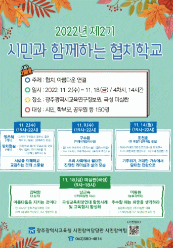[ÅåÅå´º½º]±¤Áֽñ³À°Ã»ÀÌ ¿À´Â 11¿ù2ÀÏ ±¤ÁÖ±³À°¿¬±¸Á¤º¸¿ø ´ë°´ç¿¡¼ ¡®2022 Á¦2±â ½Ã¹Î°ú ÇÔ²²ÇÏ´Â ÇùÄ¡Çб³¡¯¸¦ °³°ÇÑ´Ù.