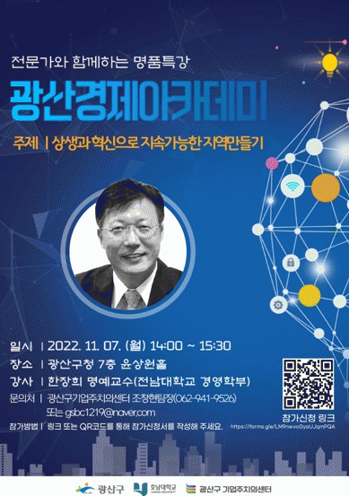 [ÅåÅå´º½º]±¤ÁÖ ±¤»ê±¸´Â ±¤»ê±¸±â¾÷ÁÖÄ¡ÀǼ¾ÅÍ¿Í 7ÀÏ ¿ÀÈÄ 2½Ã ±¸Ã» 7Ãþ À±»ó¿øÈ¦¿¡¼ ÇÑÀåÈñ ¸í¿¹±³¼ö¸¦ ÃÊÃ»ÇØ, ¡®»ó»ý°ú Çõ½ÅÀ¸·Î Áö¼Ó°¡´ÉÇÑ Áö¿ª¸¸µé±â¡¯¶õ ÁÖÁ¦·Î ±¤»ê°æÁ¦¾ÆÄ«µ¥¹Ì¸¦ °³ÃÖÇÑ´Ù°í ¹àÇû´Ù.