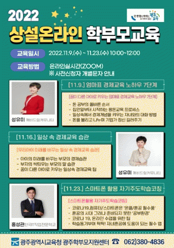[ÅåÅå´º½º]±¤Áֽñ³À°Ã»ÀÌ ¿À´Â 9ÀÏ¡¤16ÀÏ¡¤23ÀÏ 3ȸ¿¡ °ÉÃÄ Çкθ𸦠´ë»óÀ¸·Î ¡®»ó¼³¿Â¶óÀÎ Çкθð±³À°¡¯À» Ãß°¡ ¿î¿µÇÑ´Ù.
