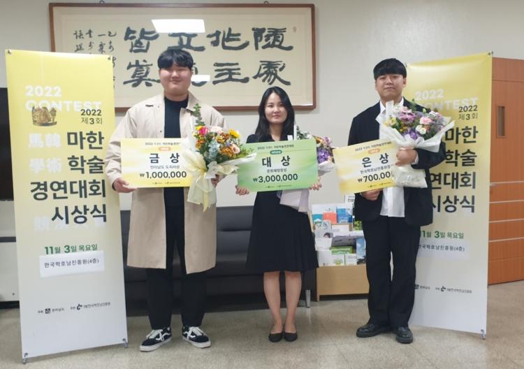 Àü³²´ë ä¼öºó ¼®»ç¼ö·á»ý(¹®ÈÀηù°í°íÇаú. Áöµµ±³¼ö ÇãÁø¾Æ)Àº Áö³ 9¿ù 30ÀÏ Àü³²µµ ±è´ëÁß °´ç¿¡¼ ¿¸° ¸¶ÇÑÇмú°æ¿¬´ëȸ¿¡¼ ¡®5-6¼¼±â ¿µ»ê°À¯¿ª °³(ËÏ)ÀÇ »ý»ê°ú À¯ÅëÀ¸·Î º» ¸¶ÇÑÀÇ Á¤Ä¡°æÁ¦¡¯¸¦ ¹ßÇ¥ÇØ, ½É»ç ³¡¿¡ 11¿ù 3ÀÏ Çѱ¹ÇÐÈ£³²ÁøÈï¿ø¿¡¼ ÁøÇàµÈ ½Ã»ó½Ä¿¡¼ ´ë»óÀÎ ¹®ÈÀçûÀå»óÀ» ¹Þ¾Ò´Ù.