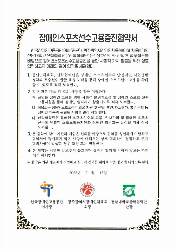 À̹ø ä¿ëÀº Áö³ 9¿ù 16ÀÏ Ã¼°áÇÑ Çѱ¹Àå¾ÖÀΰí¿ë°ø´Ü, ±¤ÁÖ±¤¿ª½ÃÀå¾ÖÀÎüÀ°È¸, Àü³²´ëÇб³»êÇÐÇù·Â´Ü ±â°ü °£ Àå¾ÖÀÎ ½ºÆ÷Ã÷¼±¼ö °í¿ë ÁõÁøÀ» À§ÇÑ ¾÷¹«Çù¾à¿¡ µû¸¥ °ÍÀÌ´Ù.