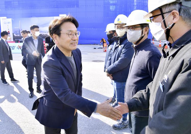 | °±âÁ¤ ±¤ÁÖ±¤¿ª½ÃÀåÀÌ 14ÀÏ ¿ÀÈÄ ¼±¸ ¿¾ »ó¹«¼Ò°¢Àå ºÎÁö¿¡¼ ¿¸° '±¤ÁÖ´ëÇ¥µµ¼°ü °Ç¸³ Âø°ø½Ä'¿¡ Âü¼®ÇØ Á¤¹«Ã¢ ±¤ÁÖ½ÃÀÇȸ ÀÇÀå, ¼Û°©¼® ±¹È¸ÀÇ¿ø, ±è¿ëÅà ÀÛ°¡ µî ³»ºóµé°ú °ø»ç ½ÃÀÛÀ» ¾Ë¸®´Â ¹öưÀ» ´©¸£°í ÀÖ´Ù./±¤ÁÖ±¤¿ª½Ã Á¦°ø |
