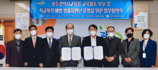 [ÅåÅå´º½º]±¤Áֽñ³À°Ã»ÀÌ 15ÀÏ ±¤ÁÖÁö¹æº¯È£»çȸ¿Í ±³À°È°µ¿ º¸È£ ¹× Çб³Æø·Â ¿¹¹æ ¹ý·üÁö¿ø´Ü ¿î¿µÀ» À§ÇÑ ¾÷¹«Çù¾àÀ» ü°áÇß´Ù.