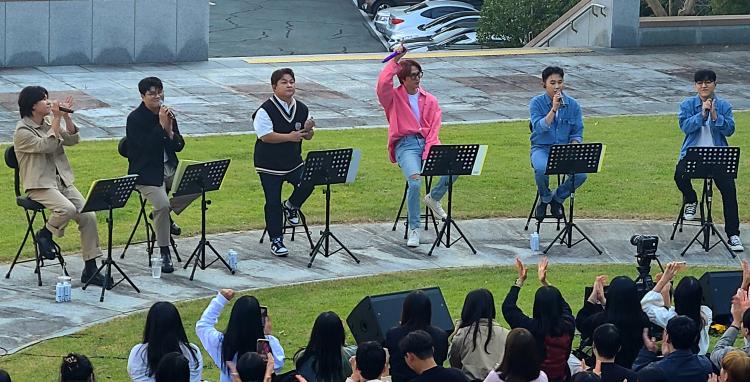 À̳¯ Ã⿬ °¡¼öµéÀº °ø¿¬¿¡ ¾Õ¼ ´ÜdzÀ¸·Î °ö°Ô ¹°µç È£³²´ëÇб³ Ä·ÆÛ½º¸¦ µ¹¸ç Çлýµé°ú Áï¼® ¹ö½ºÅ·À» Çϴ°¡ Çϸé, È£³²´ë ij¸¯ÅÍÀΠȣ´öÀÌ(ûµÕ¿À¸®)¿Í ¸¸³²À» °®´Â µî Çлýµé¿¡°Ô ÀØÁö ¸øÇÒ Ãß¾ïÀ» ¼±»çÇß´Ù.