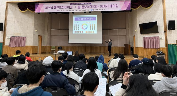 À̹ø ÇÁ·Î±×·¥Àº ±¤ÁÖÇлý±³À°¹®Èȸ°ü ÁÖ°üÀ¸·Î È£³²´ë ºäƼ¹Ì¿ëÇаú°¡ Âü¿©ÇØ Á¶°í¹Ì ±³¼ö°¡ ÆÛ½º³ÎÄ÷¯Å×¶óÇǸ¦ ÁÖÁ¦·Î 22-23ÀÏ µ¿¾Æ¿©°í¿Í µ¿¸í°í¿¡¼, ³ªÀ±¿µ ±³¼ö°¡ ÆÛ½º³Î ÆÐ¼ÇÄÚµð³×À̼ÇÀ» ÁÖÁ¦·Î 24ÀÏ »óÀÏ¿©°í¿¡¼, µ¿ÀÏ ÁÖÁ¦·Î ¹®¼ÒÈñ ±³¼ö°¡ 25ÀÏ ¼º´ö°í¿¡¼ °¢°¢ Ư°À» ÁøÇàÇØ °í3 ¼öÇè»ýµé¿¡°Ô ÀڽŸ¸ÀÇ À̹ÌÁö¸ÞÀÌÅ· ³ëÇϿ츦 ¾Ë·ÁÁÖ´Â ½Ã°£À» °¡Á³´Ù.