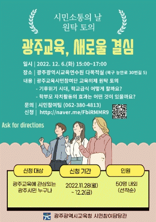 ÇÑÆí ½Ã±³À°Ã»Àº ÇöÀå°ú ¼ÒÅëÇÏ°í ½Ã¹ÎµéÀÇ ÀǰßÀ» °æÃ»ÇϰíÀÚ ¸Å³â µÎ Â÷·Ê ½Ã¹Î¼ÒÅëÀÇ ³¯À» ÁøÇàÇϰí ÀÖ´Ù. ±¤ÁÖ±³À°¿¡ °ü½É ÀÖ´Â ±¤ÁֽùÎÀ̶ó¸é À¥ÆäÀÌÁö¿¡¼ ´©±¸³ª ½ÅûÇÒ ¼ö ÀÖ´Ù.