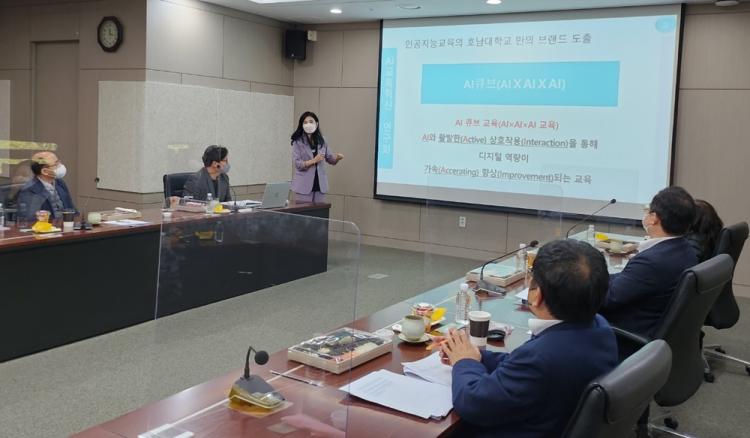 È£³²´ëÇб³´Â 12¿ù 8ÀÏ ±³¹«È¸Àǽǿ¡¼ ¹Ú»óö ÃÑÀå°ú ÁÖ¿ä º¸Á÷ÀÚµéÀÌ Âü¼®ÇÑ °¡¿îµ¥ ÀΰøÁö´É±³À°Çõ½ÅÀ§¿øÈ¸ ÃÖÁ¾ ¹ßǥȸ¸¦ °®°í, AI±³À° ºê·£µå¸¦ °áÁ¤ÇÏ°í ±¸Ã¼ÀûÀÎ AIƯ¼ºÈ ±¸Çö¹æ¾ÈÀ» ³íÀÇÇß´Ù.