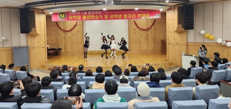 Á¹¾÷ȯ¼Û½ÄÀº À¯Çлý À½¾Ç, ´í½º µ¿¾Æ¸®ÀÇ ÃàÇϰø¿¬À» ½ÃÀÛÀ¸·Î Á¹¾÷¿¹Á¤ À¯Çлý¿¡ ´ëÇÑ Çл纸°í, ÀÌ¿µºó »çȸ°æ¿µ´ëÇÐÀåÀÇ Ä¡»ç, ¼Õ¿ÏÀÌ ±¹Á¦±³·ùóÀåÀÇ Ãà»ç, ½Ã»ó½Ä(°ø·Î»ó, Çѱ¹¾î ´É·Â¿ì¼ö»ó), Á¹¾÷»ý ´ëÇ¥(½Ã°¢À¶ÇÕµðÀÚÀÎÇаú µµÄ«À̹Î) ´ä»ç ¼ø¼·Î ÁøÇàµÆ´Ù.