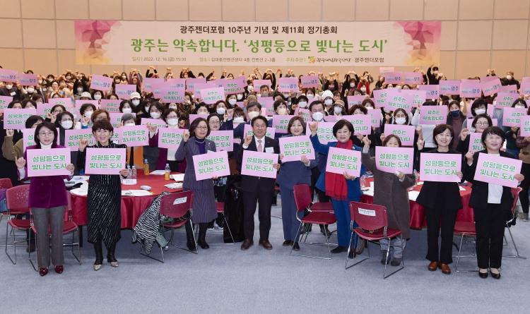 °±âÁ¤ ±¤ÁÖ½ÃÀåÀº ¡°ÀúÃâ»ý, µ¹º½, ÀαÇ, ¼ºÆòµî ¹®È È®»ê, ÀÏ¡¤»ýȰ±ÕÇü µî ´Ù¾çÇÑ ÀÇÁ¦¸¦ ¹ß±¼Çϰí Ȱµ¿ÇÑ ¿©¼º°èÀÇ ³ë°í¿¡ °¨»çÇÏ´Ù¡±¸ç ¡°°¡Á¤, Á÷Àå µî Àϻ󿡼 ¼ºÆòµî »çȸ¸¦ ¸¸µé±â À§ÇØ ³ë·ÂÇØ ³ª°¡ÀÚ¡±°í ¸»Çß´Ù.