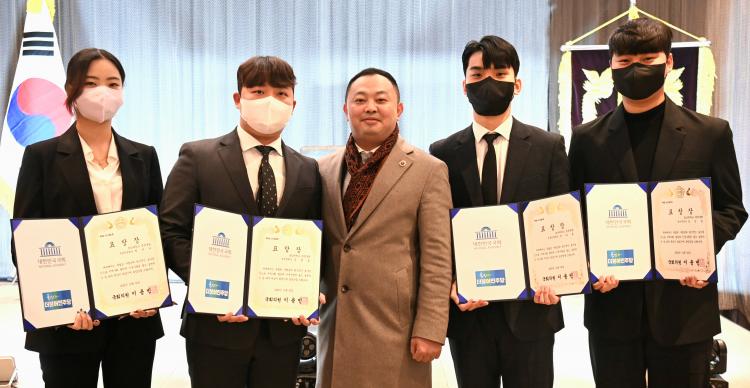 ÀÌ¾î °¿øÈ¿ È£³²´ëÇб³ ÃÑÇлýȸÀå°ú ¹ÚÁö¼ö, Á¤´ÙÈÆ ºÎȸÀå, ÀÓÀν »ç¹«±¹Àå µî 2022³â È£³²´ëÇб³ ÃÑÇлýȸÀå´Ü 4¸í¿¡°Ô ÀÌ¿ëºó ±¹È¸ÀÇ¿øÀÇ Ç¥Ã¢ÀåÀÌ ¼ö¿©µÆ´Ù.