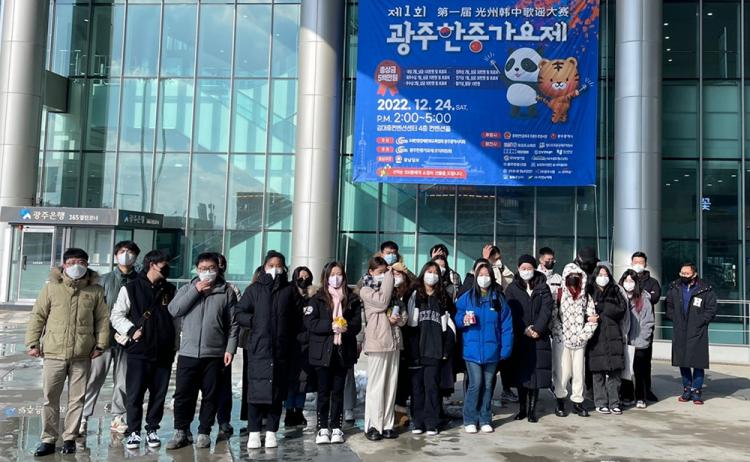 È£³²´ëÇб³¿¡ ÀçÇÐ ÁßÀÎ Áß±¹ ÇлýµéÀº À̳¯ ÇöÀåÀ» ¹æ¹®, °á¼±¹«´ë¿¡ ¿Ã¶ó Áß±¹¾î ³ë·¡¸¦ ºÎ¸¥ È£³²´ë Áß±¹¾îÇаú 3Çг⠱è¼öÁ¤ Çлý¿¡ ´ëÇÑ ¿¶í ÀÀ¿øÀ» ÆîÃÆ´Ù.