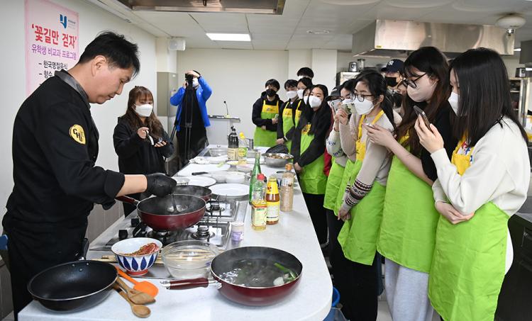 ºñ±³°úÀÎ ¡®²É±æ¸¸ °ÈÀÚ¡¯ ÇÁ·Î±×·¥ÀÇ Ã¹ ¼ø¼·Î 1¿ù 9ÀÏ ¿ÀÈÄ 2½Ã Çö¸í°ü 5Ãþ ¿Ü½ÄÁ¶¸®Çаú ÇѽĽǽÀ½Ç¿¡¼ ¿¸° À̳¯ Ư°¿¡´Â ¿Ü±¹ÀÎ À¯Çлý 20¿©¸íÀÌ Âü¼®Çß´Ù.