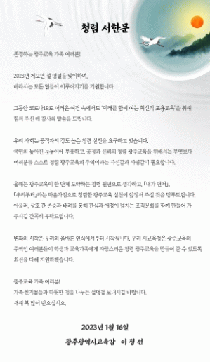 [ÅåÅå´º½º]ÀÌÁ¤¼± ±³À°°¨ÀÌ 2023³â °è¹¦³â ¼³ ¸íÀýÀ» ¸ÂÀÌÇØ û·Å ÀÇÁö¿Í ´çºÎ¸¦ ´ãÀº û·Å ¼Çѹ®À» Àüü ±â°ü ¹× Çб³¿¡ ¹ß¼ÛÇß´Ù.